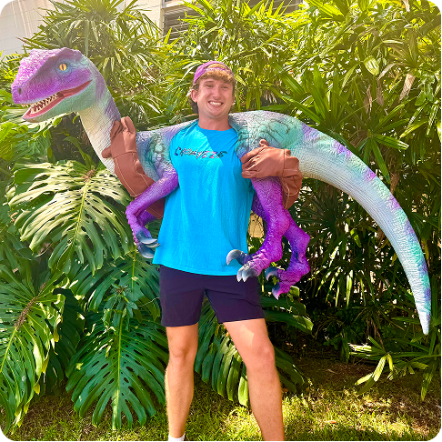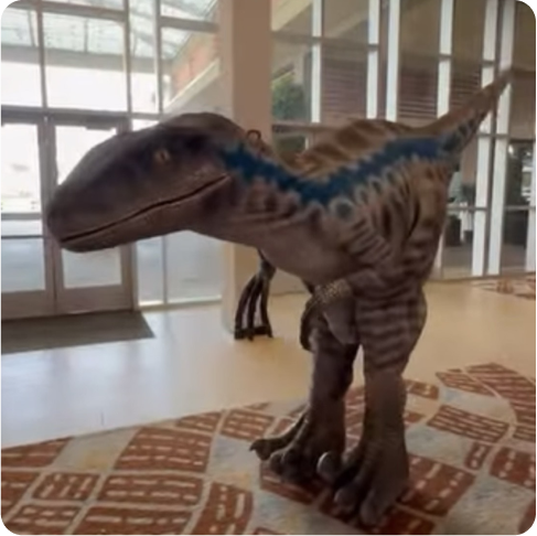 Add excitement to your corporate event. Valorant is a friendly, crowd-pleasing dinosaur who brings smiles and fun for all ages. A great way to entertain families and guests!